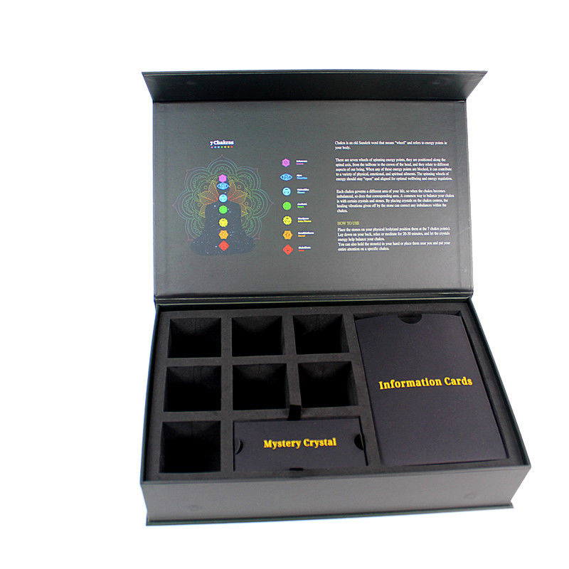 - 情報の内部構造: 内部蓋には,機能と美学的な魅力を組み合わせた,印刷された教材や装飾的なコンテンツ (チャクラ図のようなもの) があります.